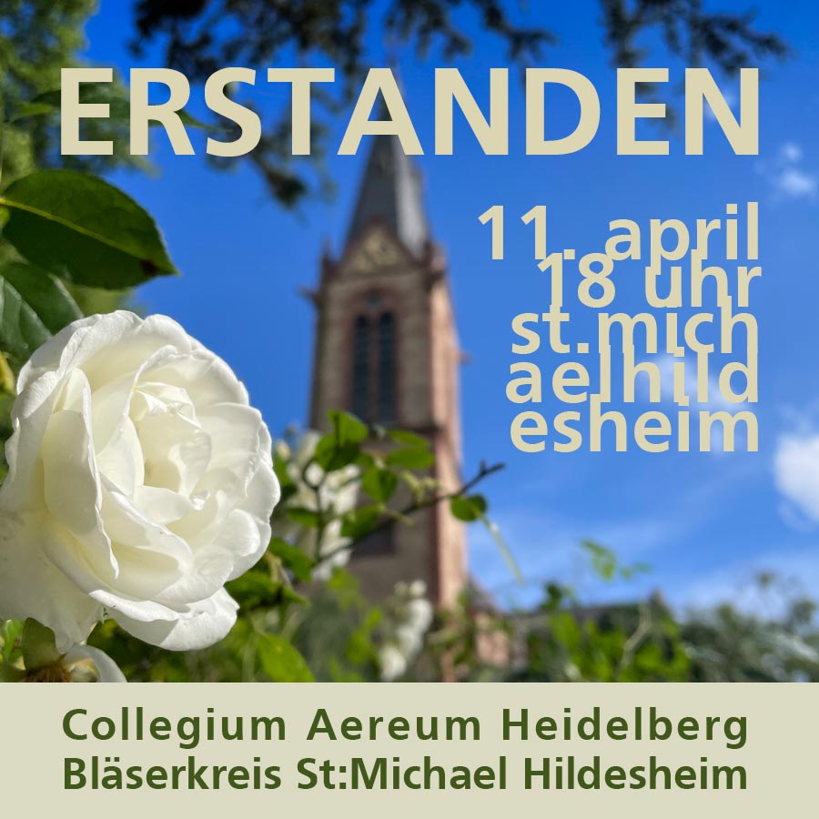 Pfingsten 2024 haben die Hildesheimer Bläserinnen und Bläser ein musikalisches Wochenende in Heidelberg verbracht. Der Gegenbesuch des Heidelberger Ensembles steht nun eine Woche nach Ostern an. Lassen Sie sich von der Osterbotschaft der Musik berühren und erleben Sie Momente der Besinnung ebenso wie die mitreißende Klangfülle der Osterbotschaft: "Erstanden!"