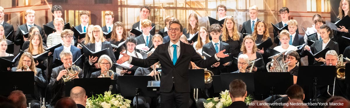 Es musizieren der Bläserkreis St:Michael (Leitung: Björn Ackermann), der Juventis Jugendchor des Kaiserin-Auguste-Viktoria-Gymnasiums Celle (Leitung: Stephan Doormann) zusammen mit KMD Angelika Rau-Culo (Orgel).